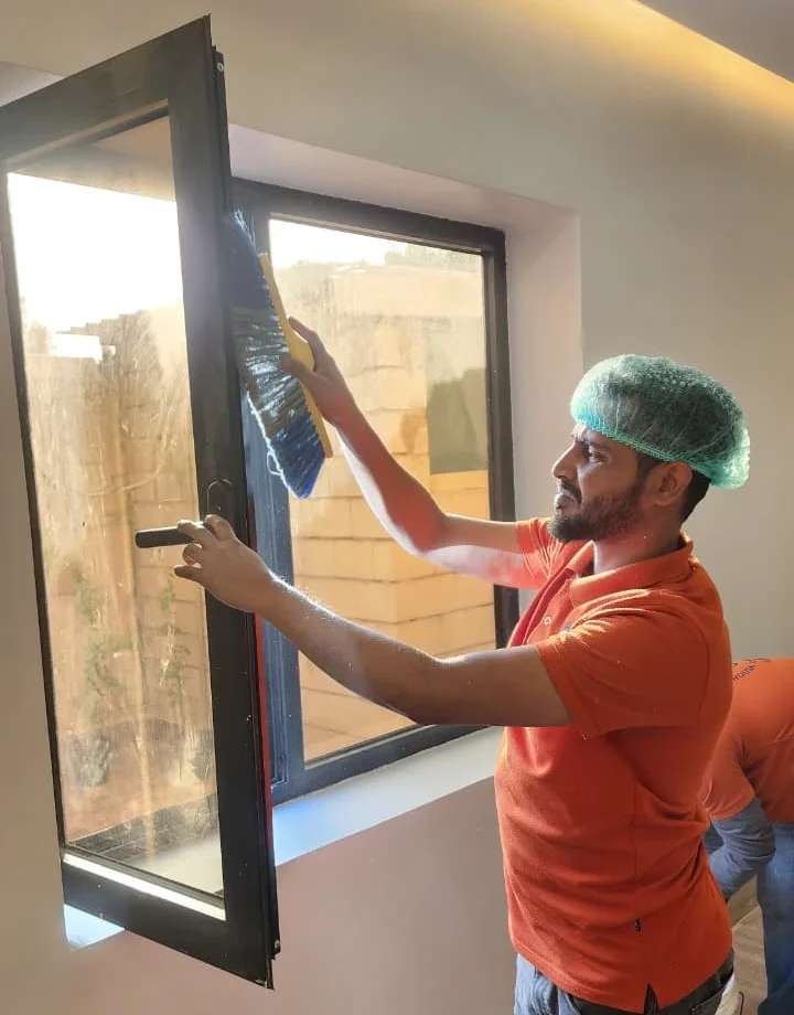 نحن نقدم خدمة تنظيف احترافية للنوافذ والواجهات الزجاجية، مع إزالة الغبار، آثار الأمطار، واللطخات التي تحجب الرؤية. تضمن عمليتنا المتخصصة حصولكم على زجاج فائق النقاء واللمعان، مما يعزز الإضاءة الطبيعية في منزلكم، لنقدم لكم أفضل خدمات تنظيف النوافذ في الكويت.